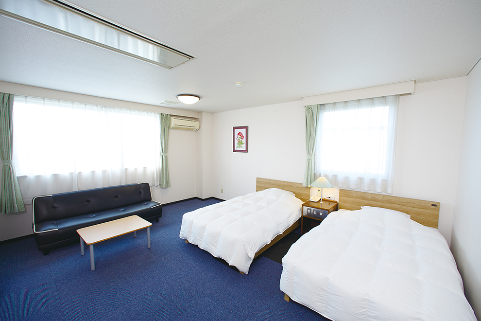 【ツインルーム】広さ28㎡/定員2名/ベッド幅120cm×195cm 一日の疲れをリフレッシュできる広々としたお部屋でおくつろぎください。ユニットバス付き
